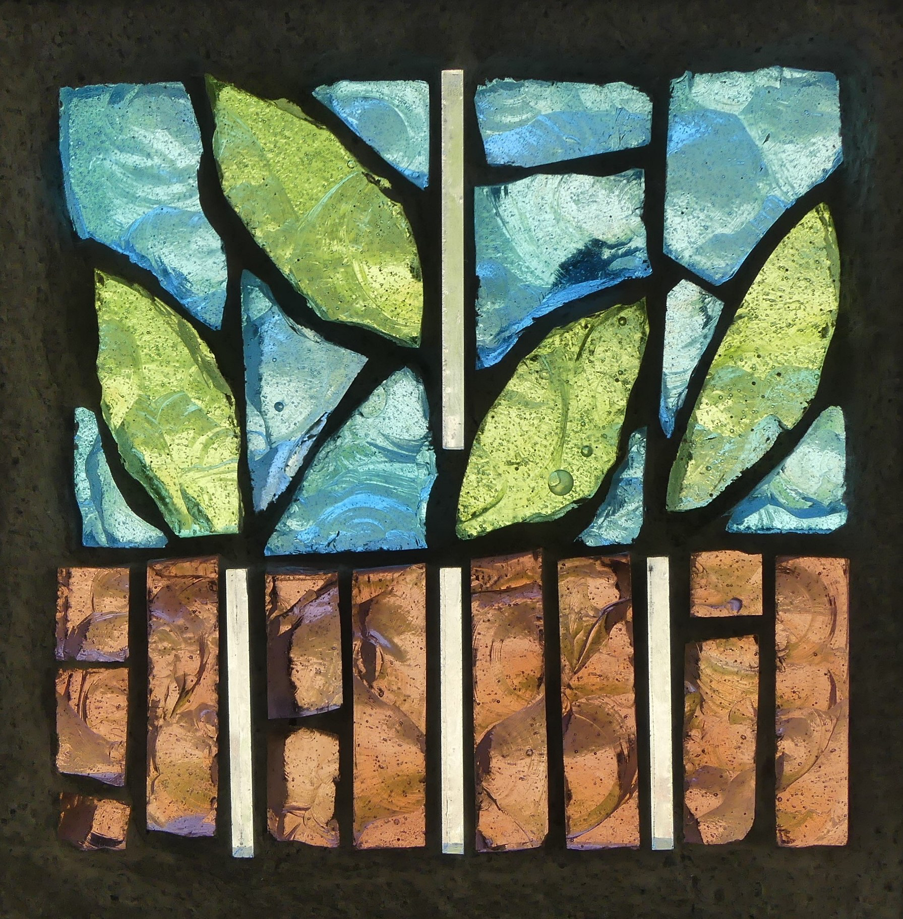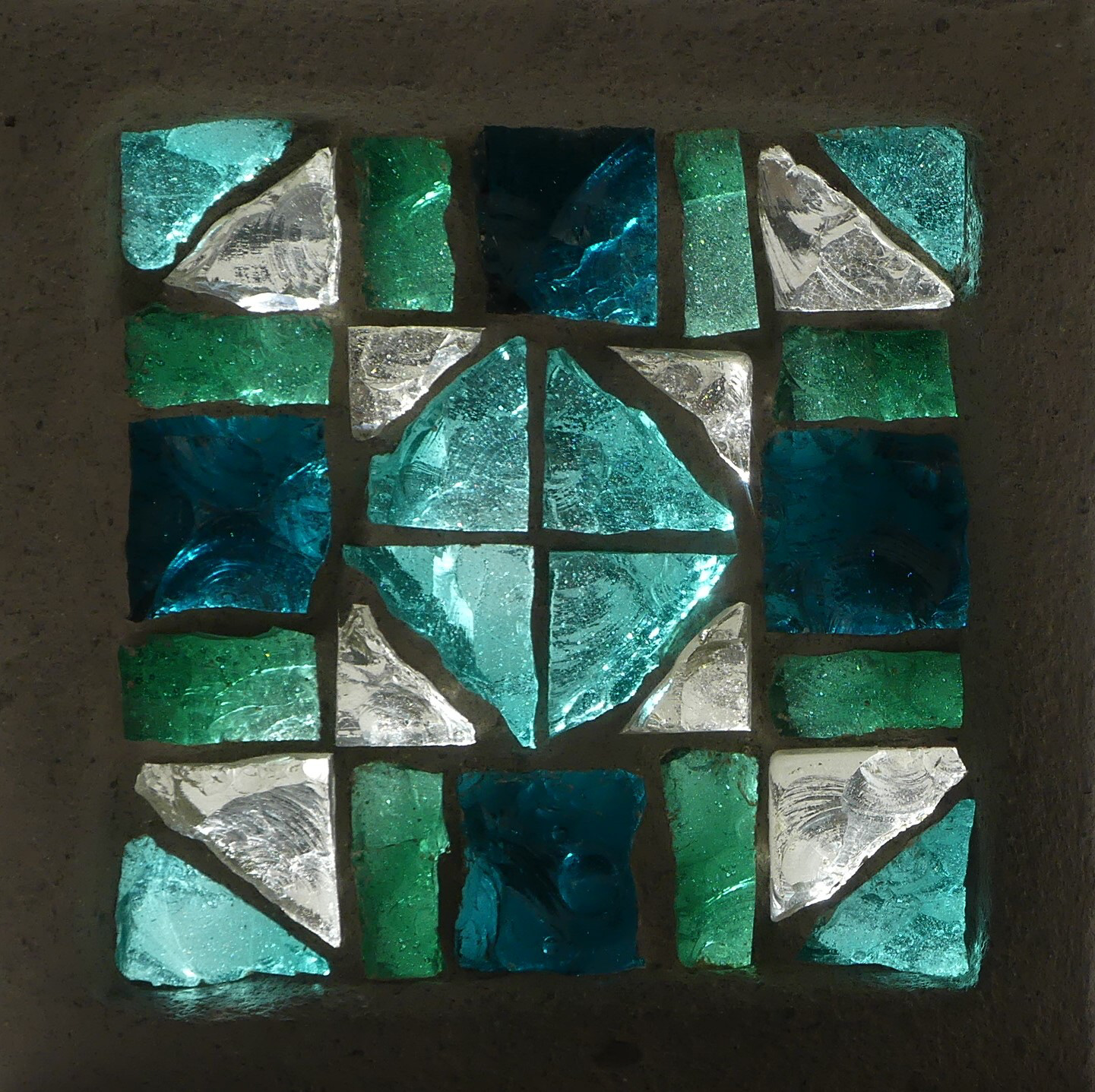 Maître-verrier, rompue à la technique traditionnelle du vitrail au plomb, je découvre dans la pratique de la dalle de verre un art vibrant, profond et doux. Ma démarche joue pleinement avec cette matière vivante, de la mise en œuvre au résultat final, pour offrir pleins d’histoires à vivre, à ressentir. D’abord une façon simple et brute de sculpter la dalle de verre, évitant les outils électriques, pour se retrouver en face à face avec la matière, en dialogue avec le verre, à l’écoute de ses suggestions face à la volonté du verrier - joie, déception, patience, impatience, compromis, fierté. Jouer aussi sur la perception des couleurs, éclatant au maximum les dalles de verre dans la masse et permettre la transformation, chaque morceau de verre se faisant alors écho. Puis, partir à la recherche des verres enfouis sous le ciment tel un archéologue pour redonner à comprendre ce qui reste figé là. Enfin la mise en lumière naturelle, éternel renouveau, offrant ainsi à chaque instant un nouvel éclat qui m'envoute irrésistiblement.